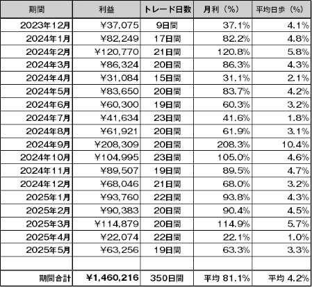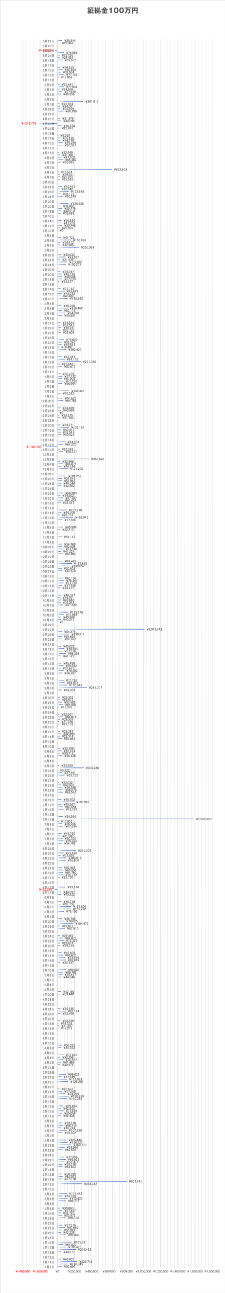 既に1年以上運用していますが、1日の平均利益は、証拠金に対して3~8%です。つまり日歩(にちぶ)3~8%が得られるということです。
