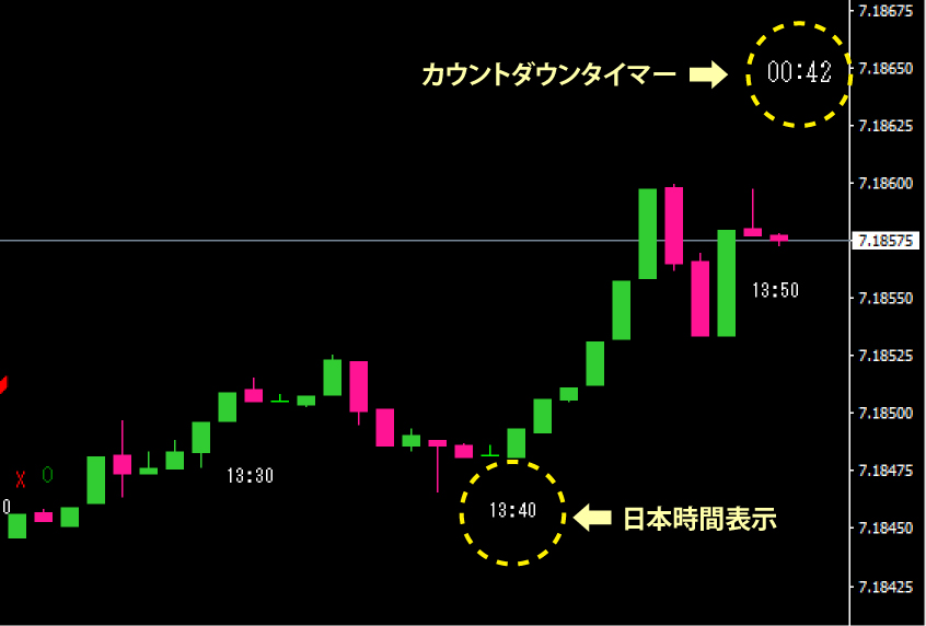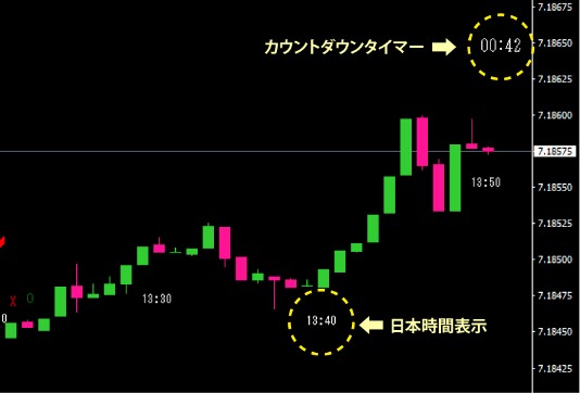 チャートの時間足を変更すると、その時間足に合わせてタイマーも連動。