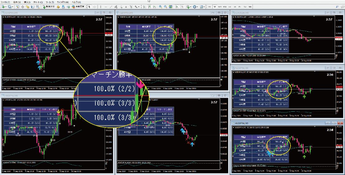 ただサインに従ってエントリーするだけで、この7時間の間に高勝率のエントリーが出来ていることを実証するものです。